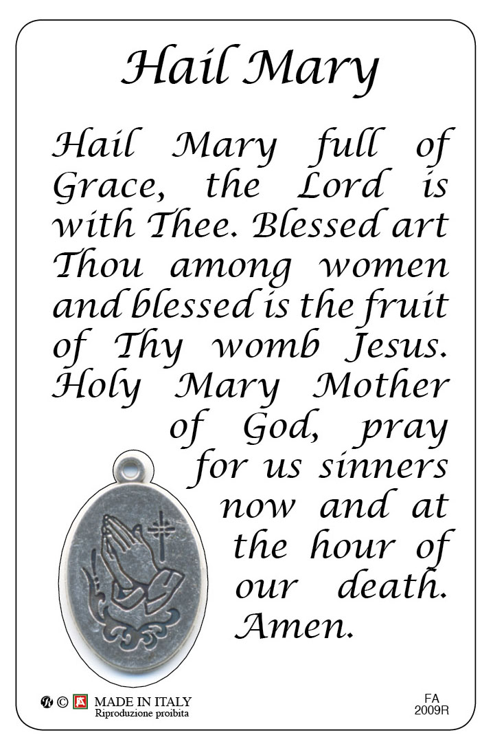 Card raffigurante la Cattedrale di Barcellona con la preghiera dell'Ave Maria in lingua inglese.