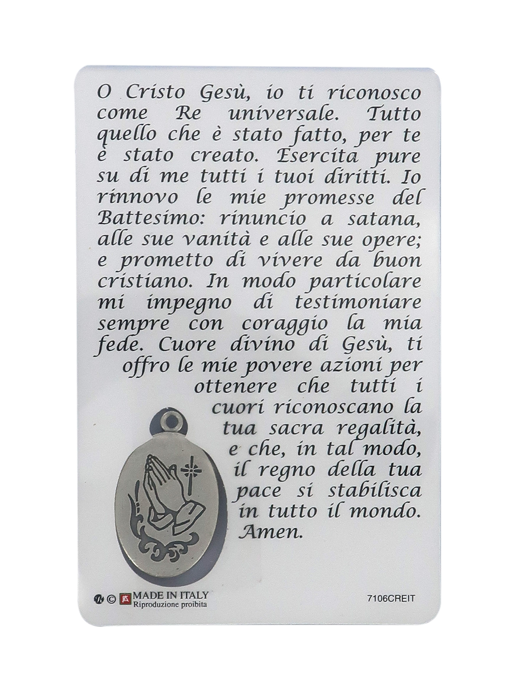 Card Cristo Rei con medaglia resinata - 5,5 x 8,5 cm - in italiano