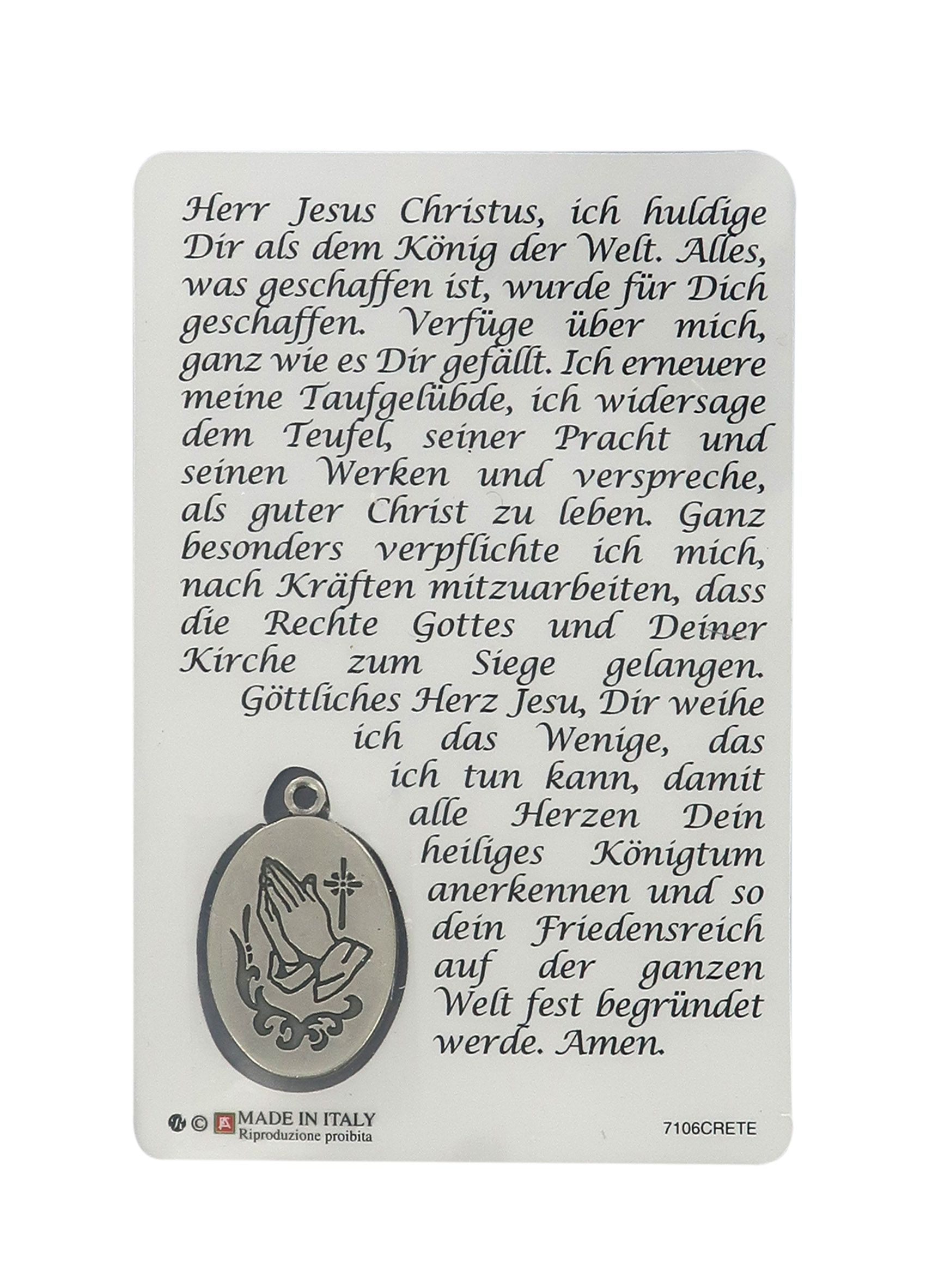 Card Cristo Rei con medaglia resinata - 5,5 x 8,5 cm - in tedesco