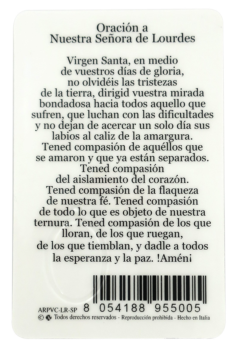 Card Madonna di Lourdes in PVC - 5,5 x 8,5 cm - spagnolo