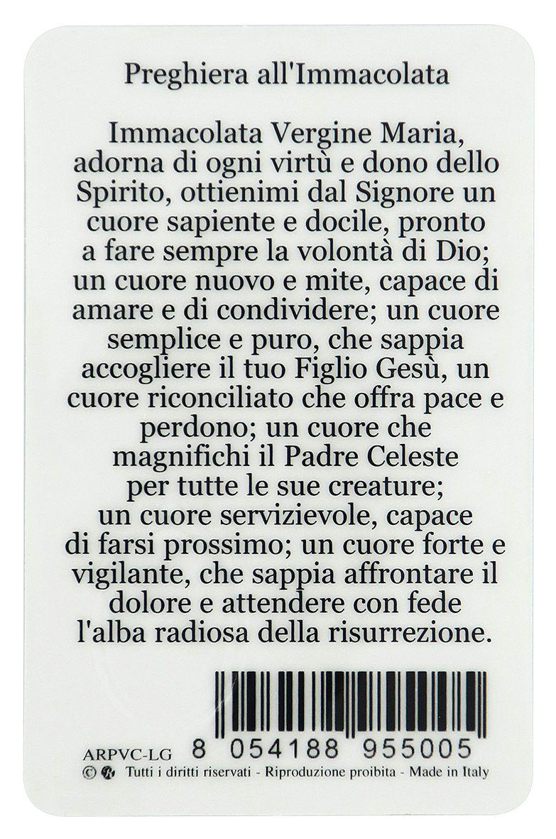 Card Madonna Miracolosa in PVC - misura 5,5 x 8,5 cm - Italiano