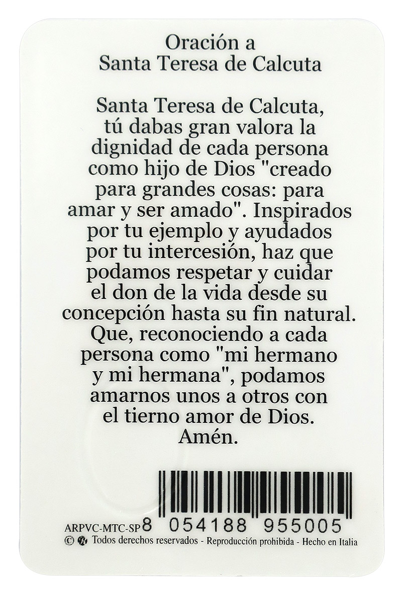 Card Madre Teresa di Calcutta in PVC - 5,5 x 8,5 cm - spagnolo