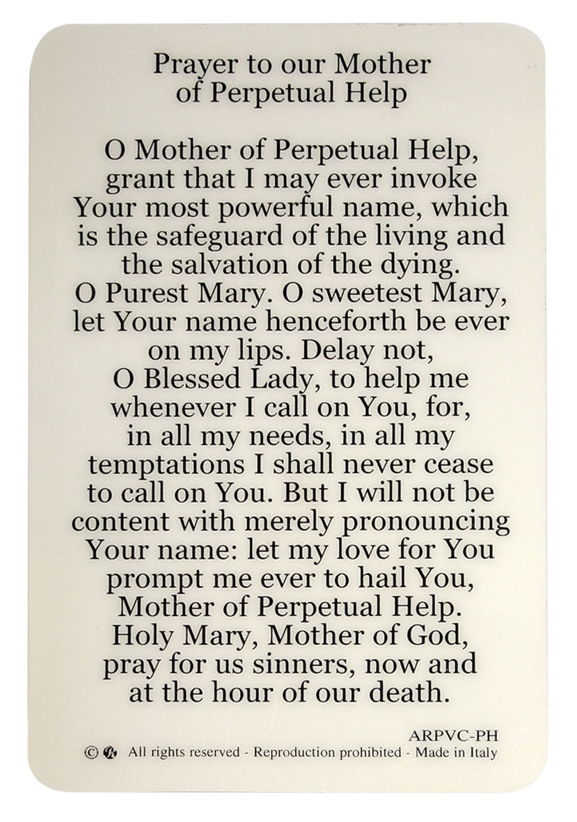 Card Perpetuo Soccorso in PVC - 5,5 x 8,5 cm - inglese