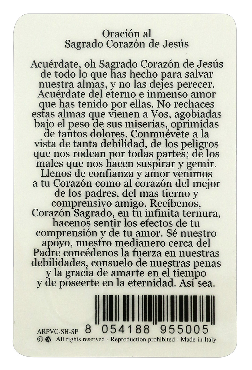 Card Sacro Cuore di Gesù in PVC - misura 5,5 x 8,5 cm - Spagnolo