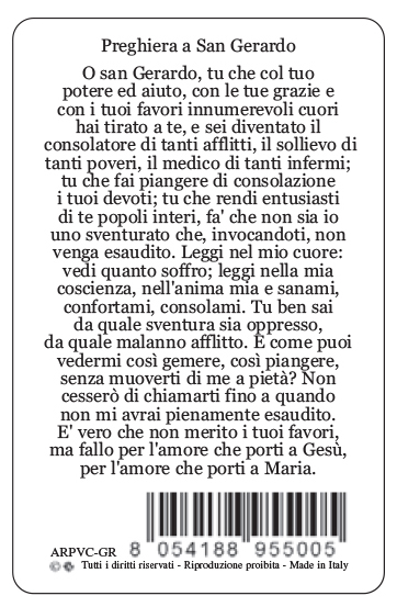 Card San Gerardo in PVC - 5,5 x 8,5 cm - italiano