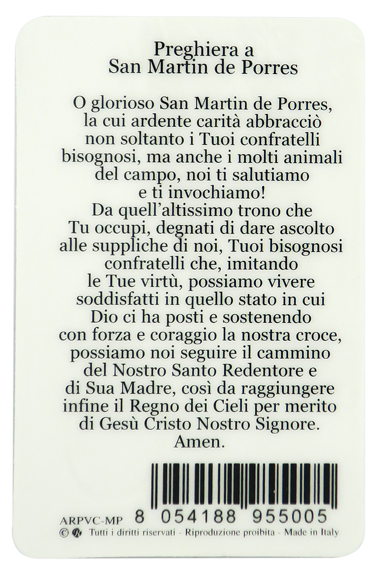Card San Martin de Porres in PVC - 5,5 x 8,5 cm - Italiano