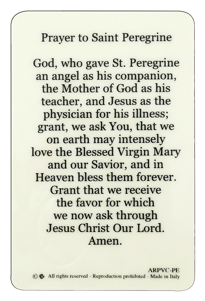 Questa immagine plastificata rappresenta San Pellegrino ed è impreziosita da una medaglia in resina a colori che ha attorno una cornice in argento a caldo.