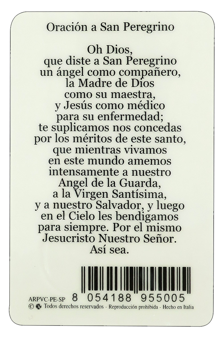 Questa immagine plastificata rappresenta San Pellegrino ed è impreziosita da una medaglia in resina a colori che ha attorno una cornice in argento a caldo.