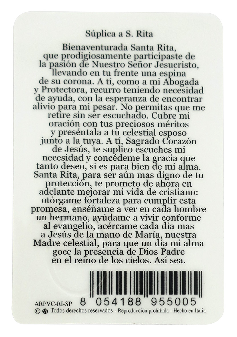 Card Santa Rita in PVC - 5,5 x 8,5 cm - spagnolo
