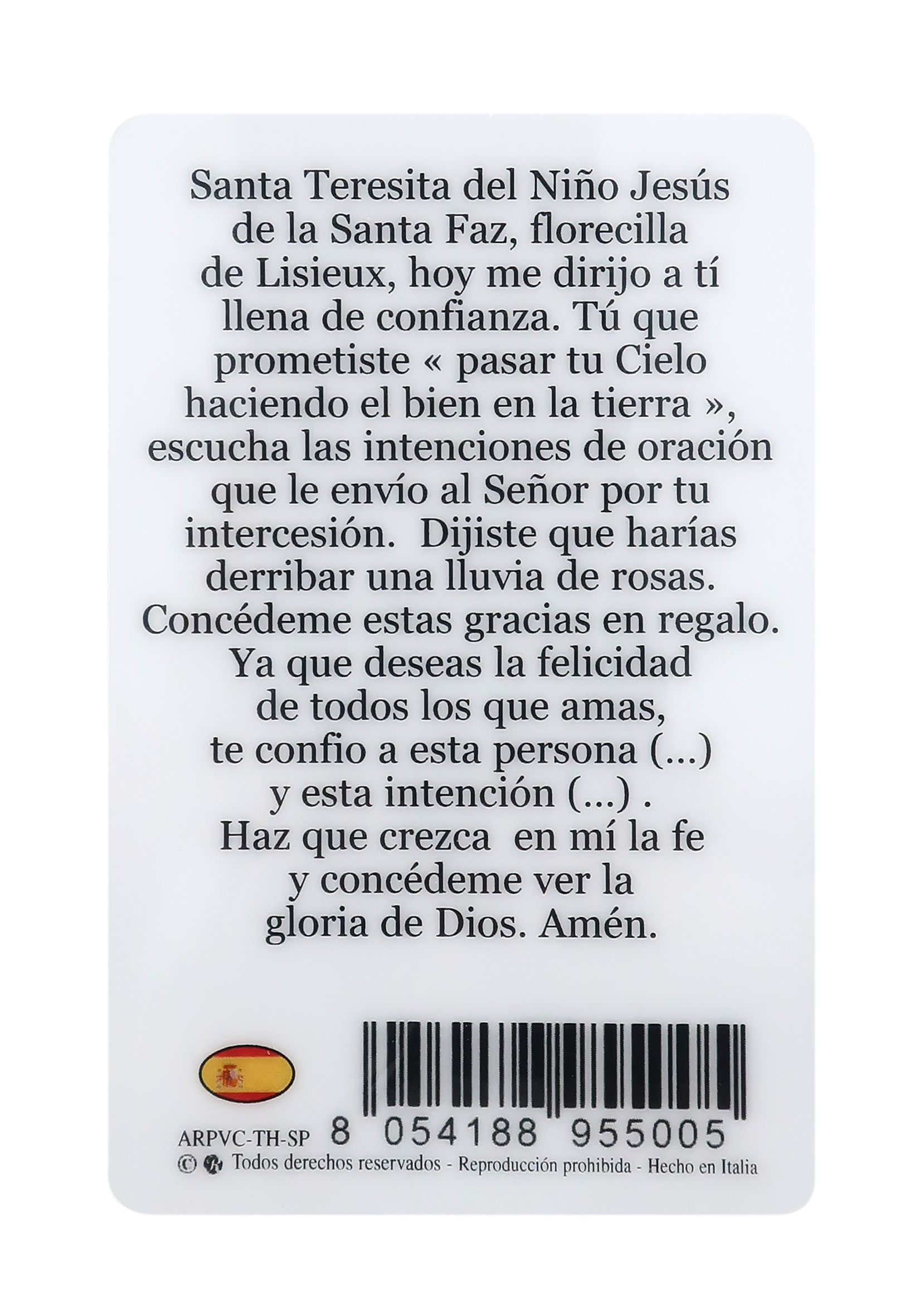 Card Santa Teresa di Lisieux in PVC - 5,5 x 8,5 cm - spagnolo