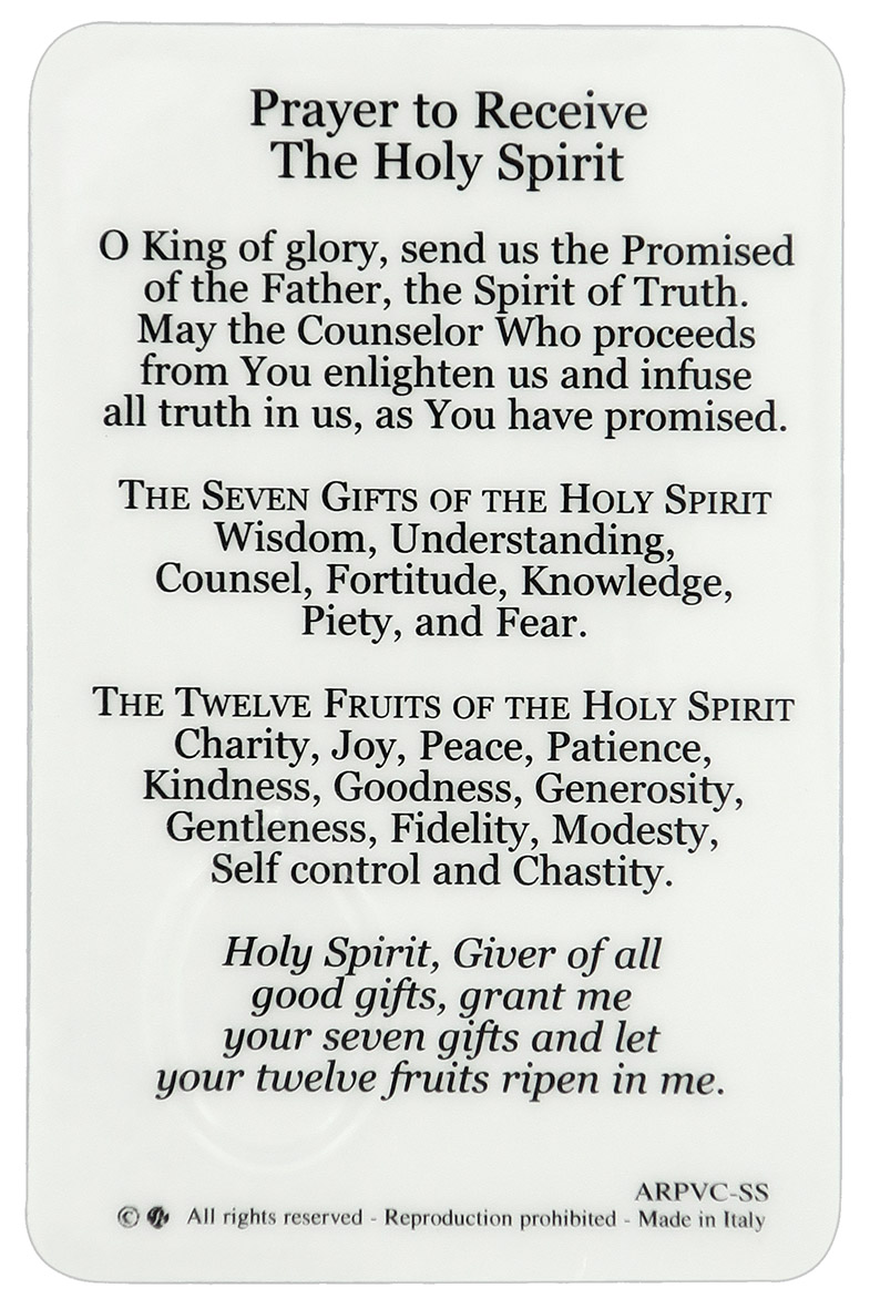 Card Spirito Santo in PVC - 5,5 x 8,5 cm - Inglese