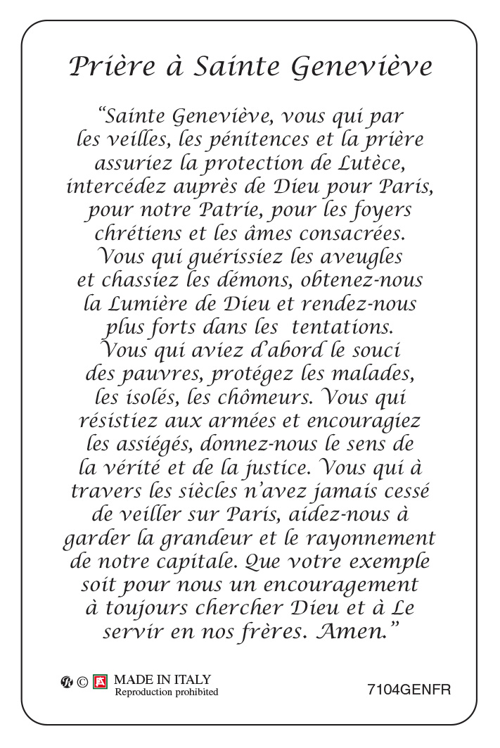 Immagine plastificata Santa Genoveffa in PVC - 5,5 x 8,5 cm- francese