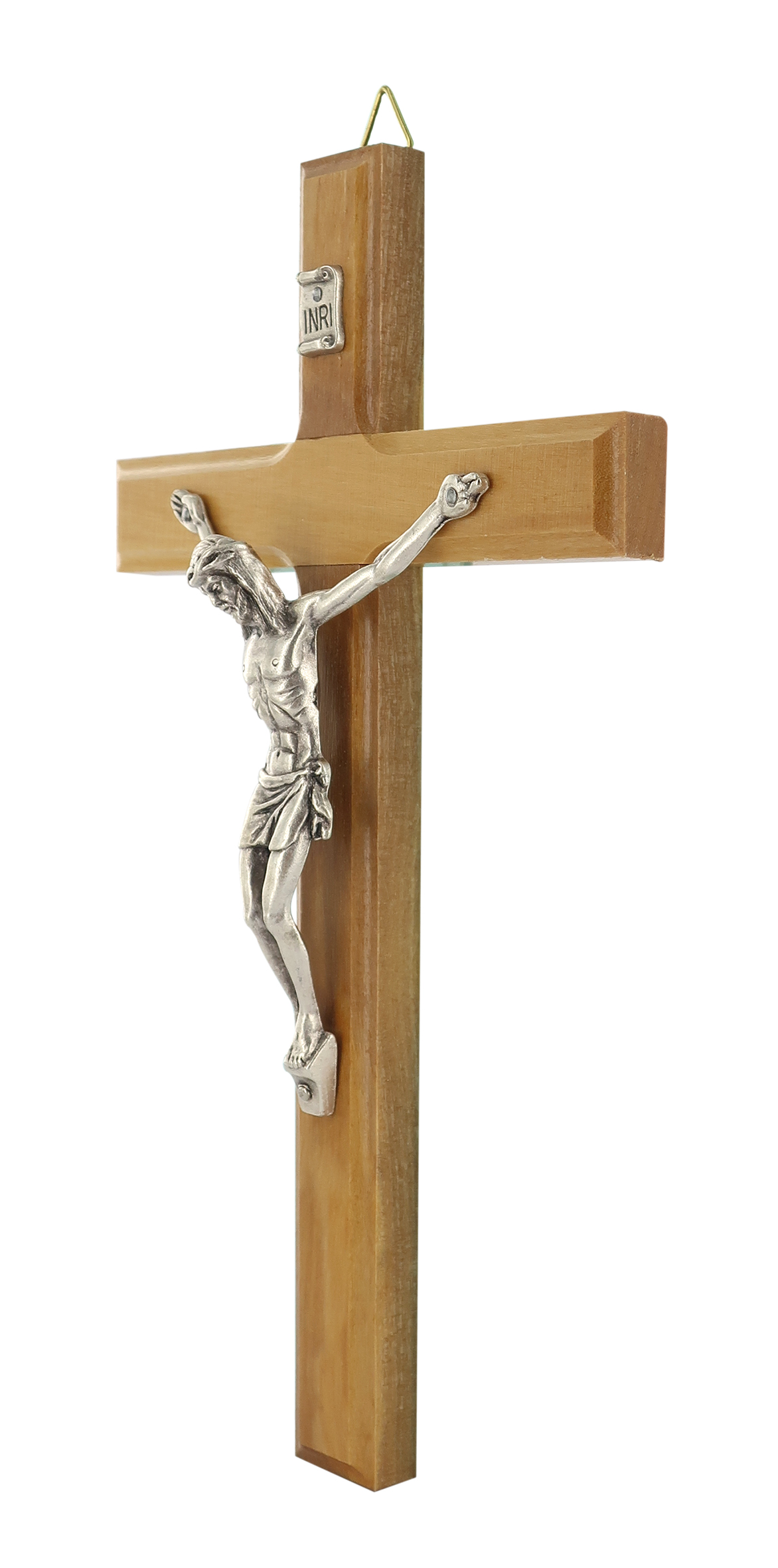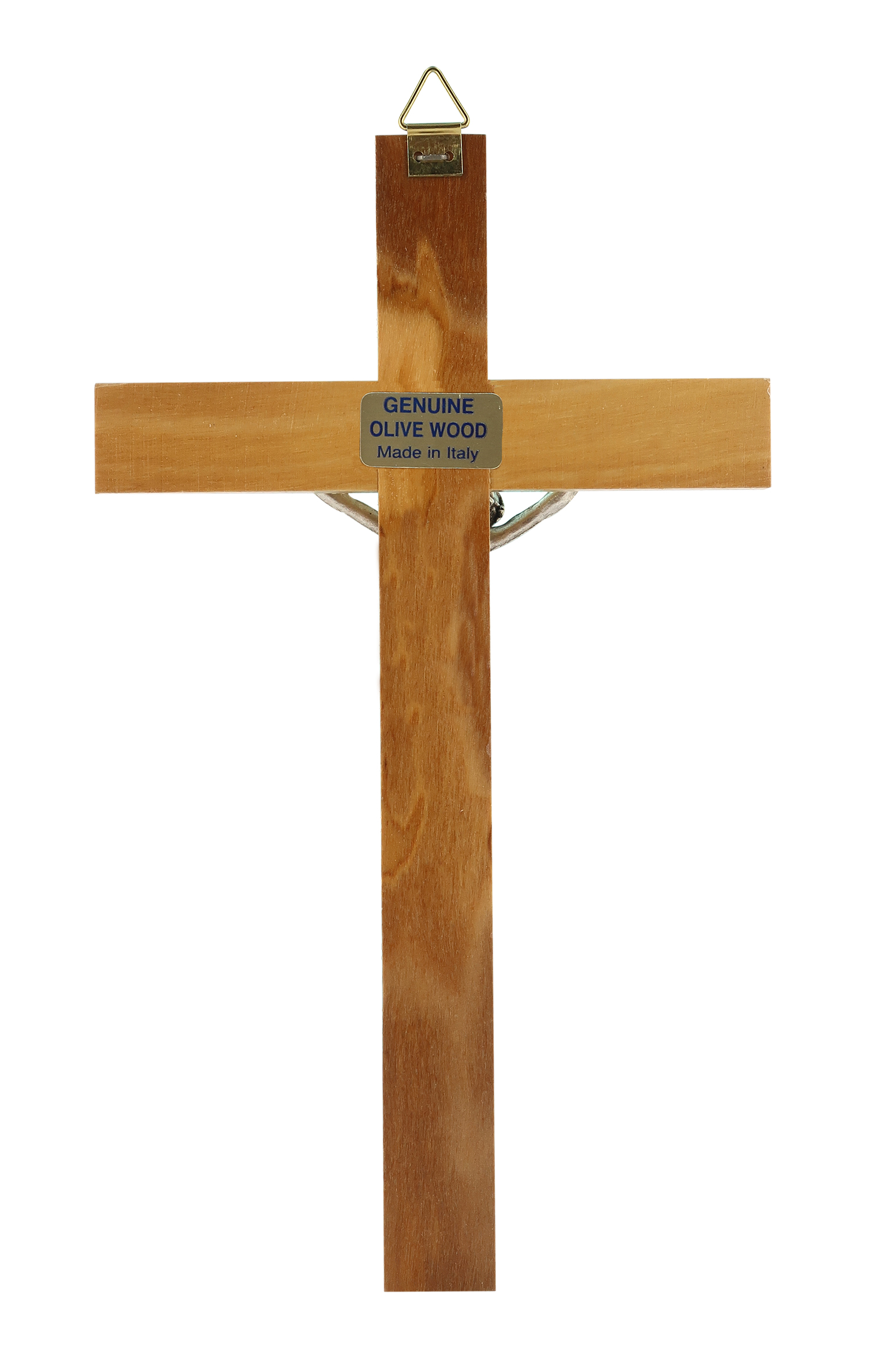 Croce in legno di ulivo con Gesù Cristo in metallo ossidato. Il legno d'ulivo non è di facile lavorazione in quanto nodoso e duro, ma la fatica nel lavorarlo è ricompensata dalla bellezza delle sue venature che danno a questo legno forme singolari e un calore unico. Gli oggetti in legno d'ulivo hanno il pregio di rimanere nel tempo, per il valore pregiato del legno, per la bellezza artistica e per il calore che suscitano nell'ammirarli. Il legno di ulivo riunisce qualità, estetica e robustezza. La particolare rifinitura di questo crocifisso il legno d'ulivo prevede che lo spigolo vivo del bordo della croce venga "tagliato" mediante un apposito processo di fresatura, che dona al crocifisso una sorta di "modanatura" e una tridimensionalità più accentuata. Il crocifisso, realizzato in Italia, verrà consegnato in una scatola. Il crocifisso è dotato di un gancetto che consente di appenderlo alla parete in modo molto semplice. Il prodotto è disponibile in altre misure: - 20 cm (codice B0C3112M8Z); - 30 cm (codice B0C31GH1Y5).