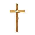 Crocifisso da Parete in Legno d'Ulivo con Cristo in Metallo Ossidato, Crocifisso da Appendere al Muro, Modello Classico Semplice, 20 Cm