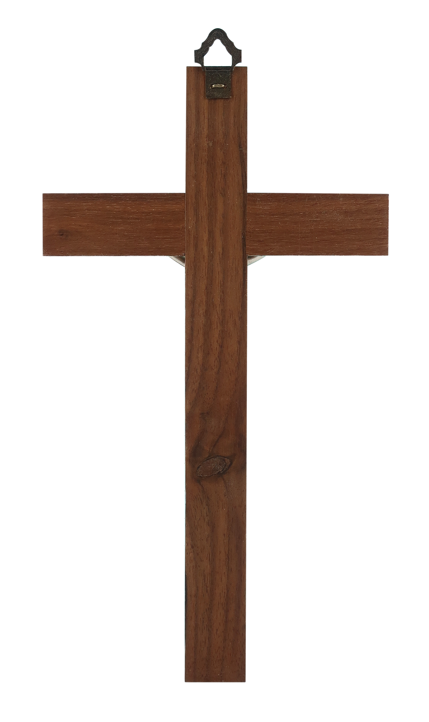 Crocifisso Tradizionale da Parete, Croce in Legno di Noce e Corpo di Cristo in Metallo, 20 Cm