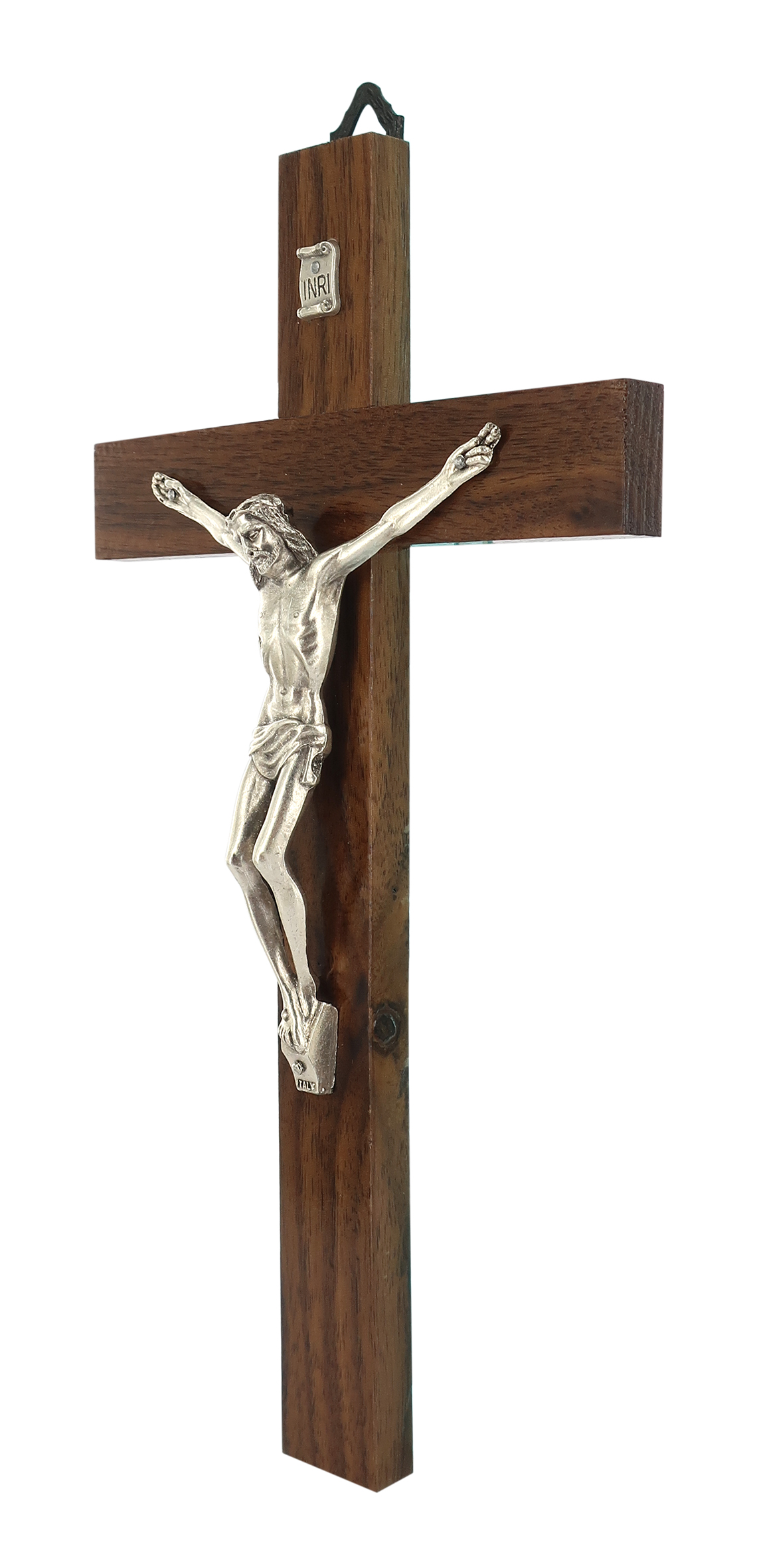 Croce in legno di noce con Gesù in metallo argentato. Realizzato in Italia. Il prodotto è disponibile in altre misure: - 17 cm (codice 161617); - 30 cm (codice 161630).