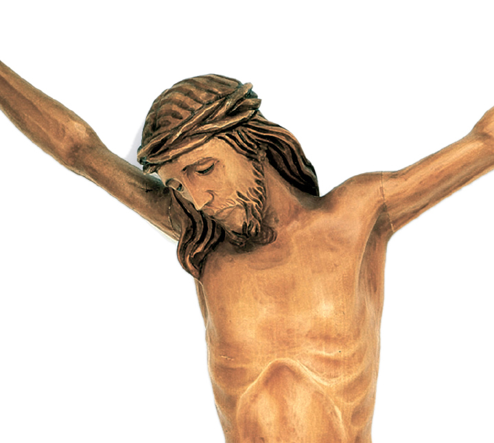Cristo intagliato in legno naturale patinato e dipinto a mano. Altezza 80 cm. Realizzato artigianalmente in Italia.