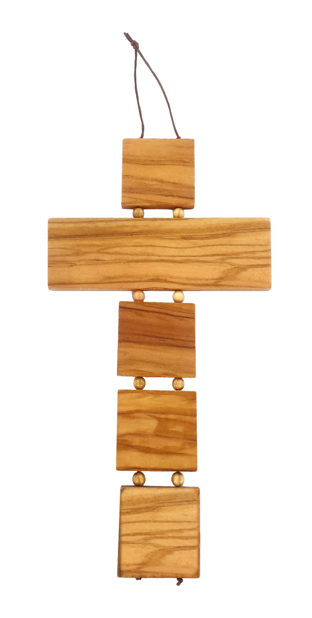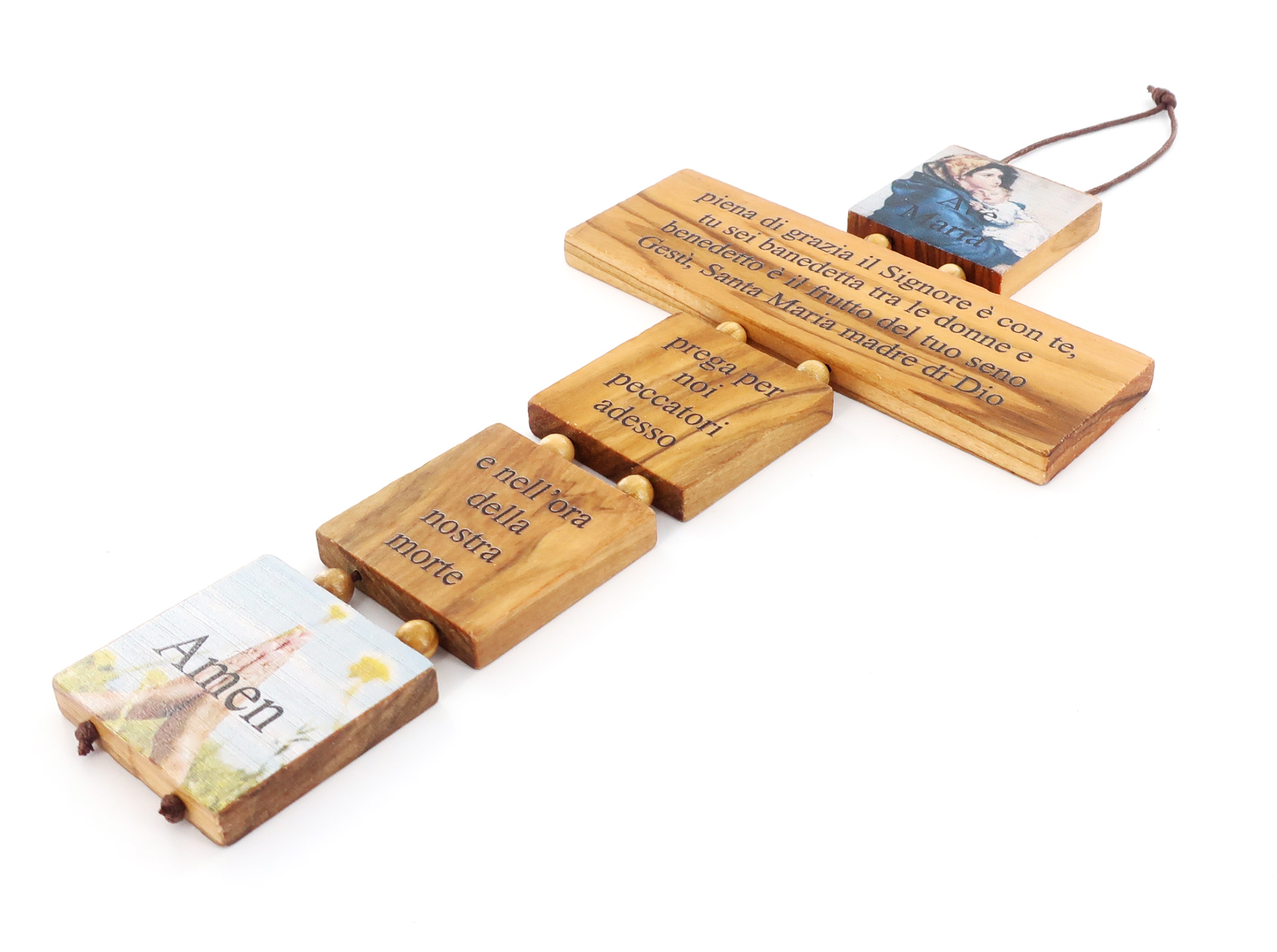 Croce Ave Maria in ulivo con immagini serigrafate Madonna Ferruzzi cm 19,5 in italiano