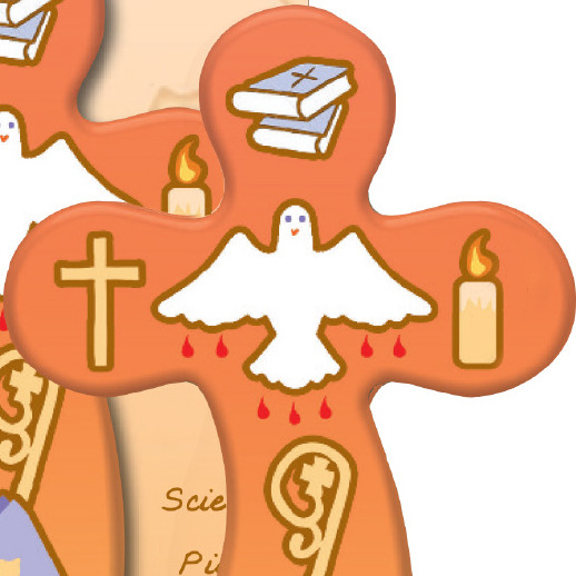 Insieme al biglietto c’è anche una croce in legno MDF che raffigura la colomba dello Spirito Santo.