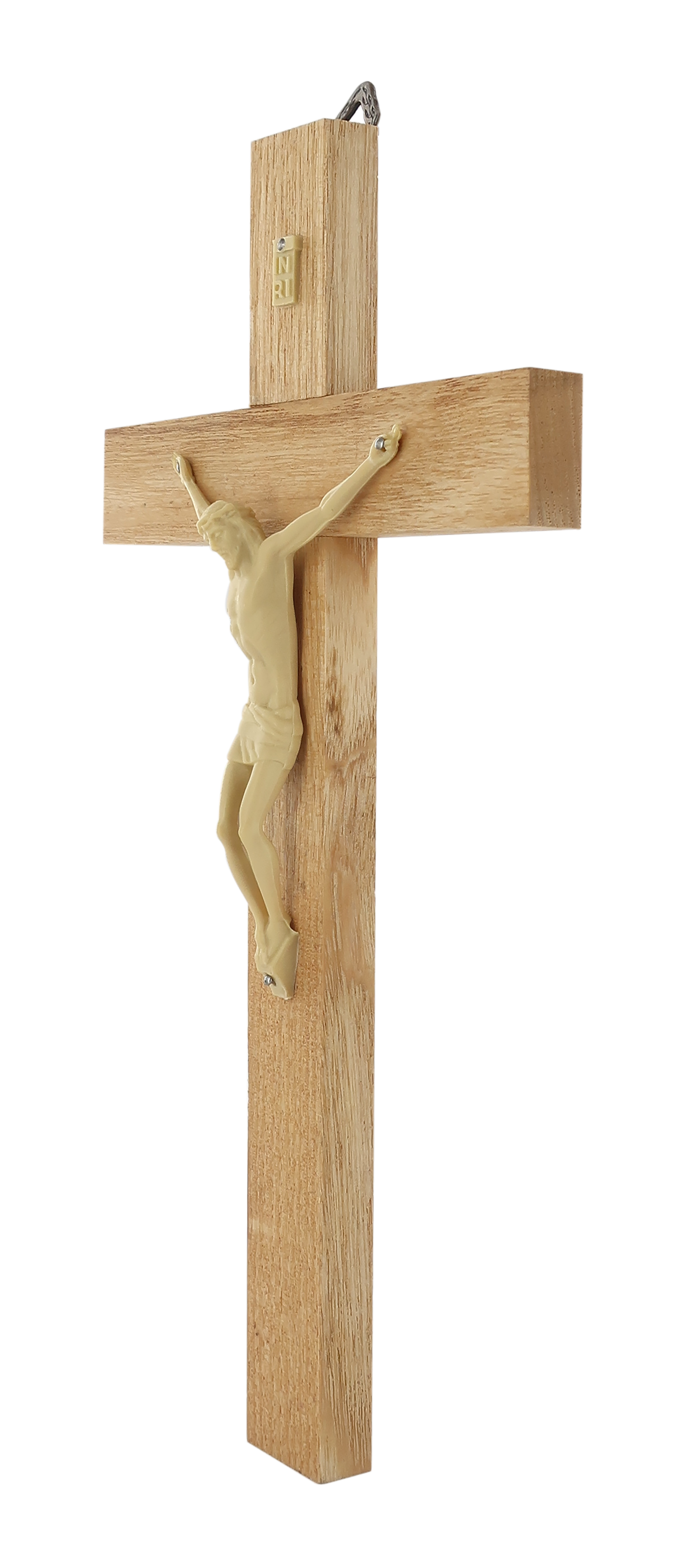 Crocifisso da Parete in Legno con Cristo in Plastica, Altezza Crocifisso 20 Cm