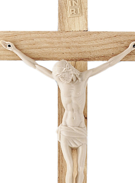 Crocifisso da Parete in Legno con Cristo in Plastica, Altezza Crocifisso 25 Cm