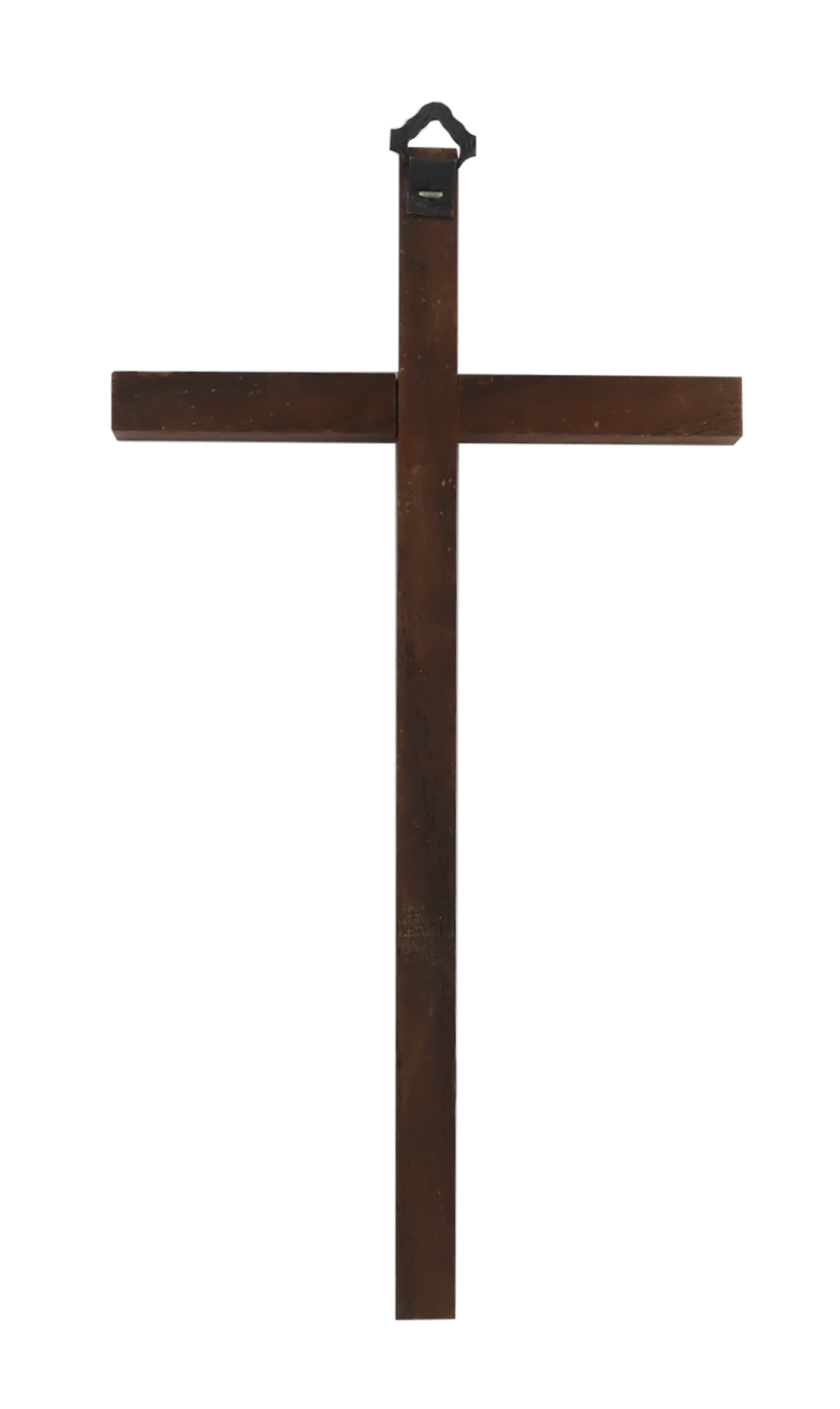 Il crocifisso è in legno wengé con intarsio in legno yellophan. Ideato per essere appeso al muro grazie al gancio sul retro.