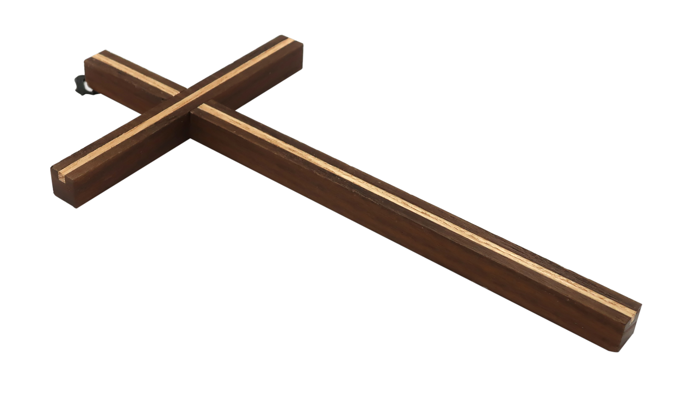 Crocifisso da parete in legno wengé con intarsio in legno yellopan - 20 cm