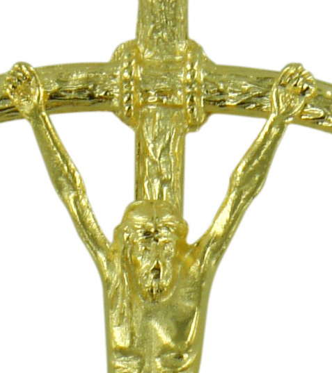 Crocifisso pastorale Giovanni Paolo II da parete in metallo dorato - 14 cm