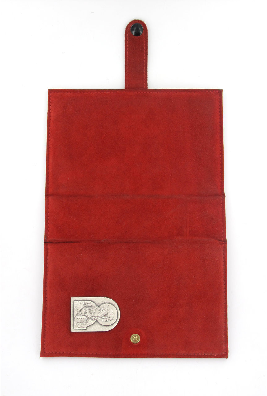 Copertina scamosciata per Liturgia delle Ore con chiusura a bottone (colore rossa). Misure dell'articolo: 18,4 x 11 x h 5 cm. Realizzato in Italia.