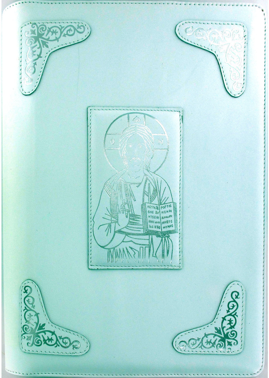 Copri Lezionario Festivo e Feriale in pelle verde con immagini dorate. Adatto per Lezionari: Feriale (pari, dispari e tempi forti), Festivo (A-B-C). Il disegno raffigura Cristo Pantocratore. Dimensioni: 32,5 x 23,5 x 5,5 cm. Alttre caratteristiche: angoli cuciti in rilievo, interno cartonato più gomma piuma, dorso arrotondato con interno in salpa. Realizzato in Italia.