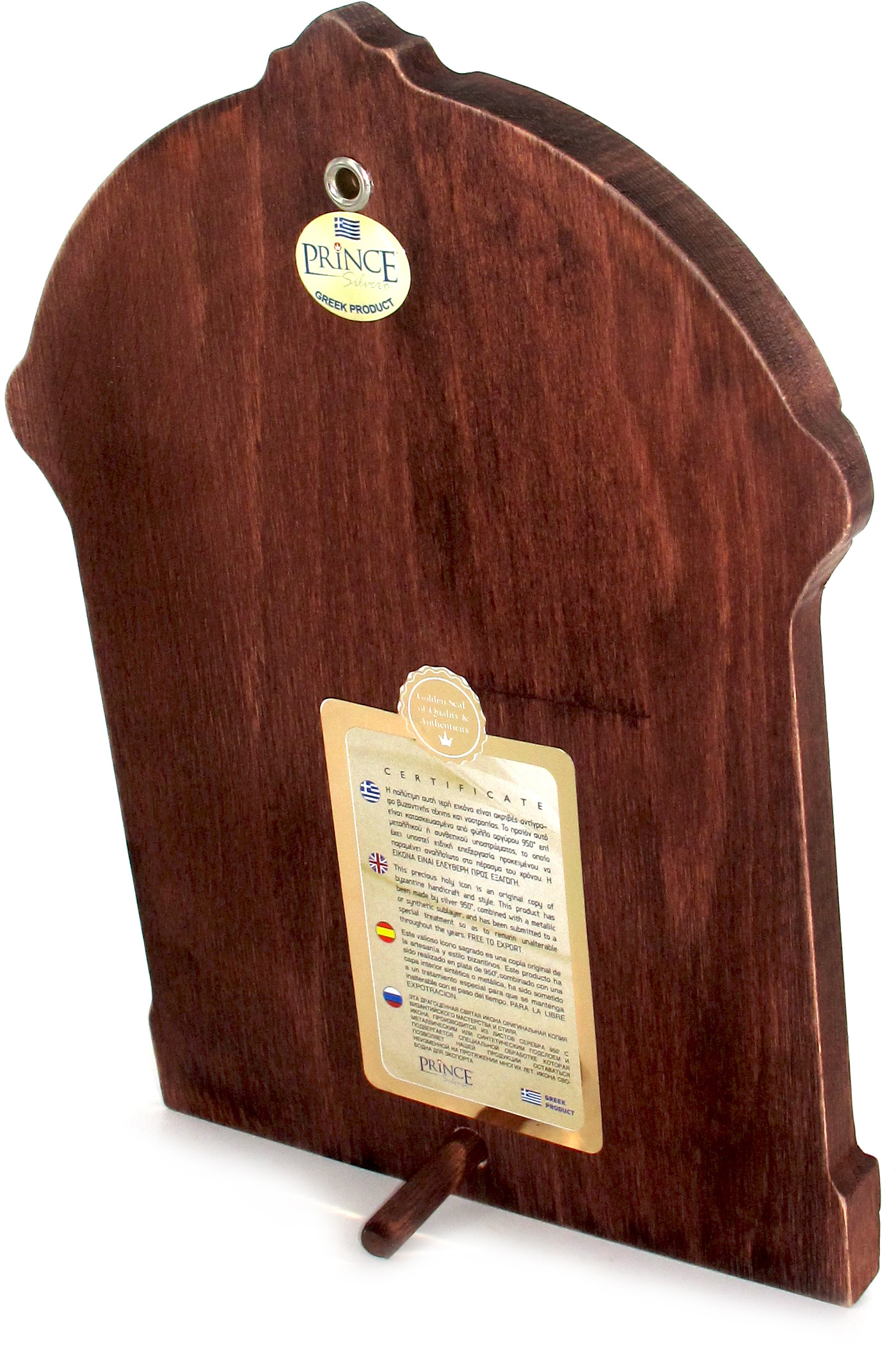 Icona Madonna di Gerusalemme Greca a forma di arco con lastra in argento e cornice in legno - 24 x 16 cm