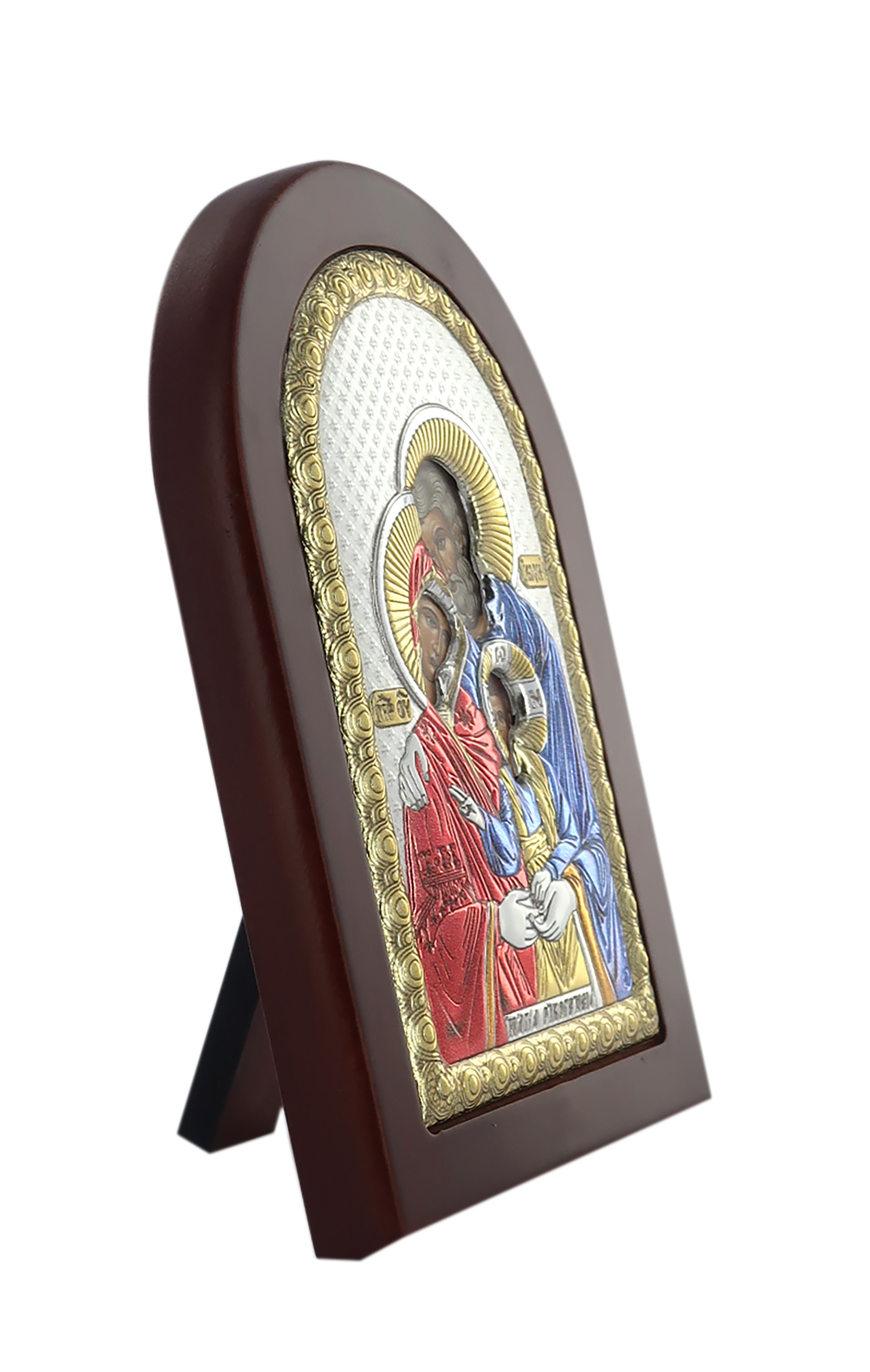 Icona Sacra Famiglia greca a forma di arco con lastra in argento - 10 x 14 cm