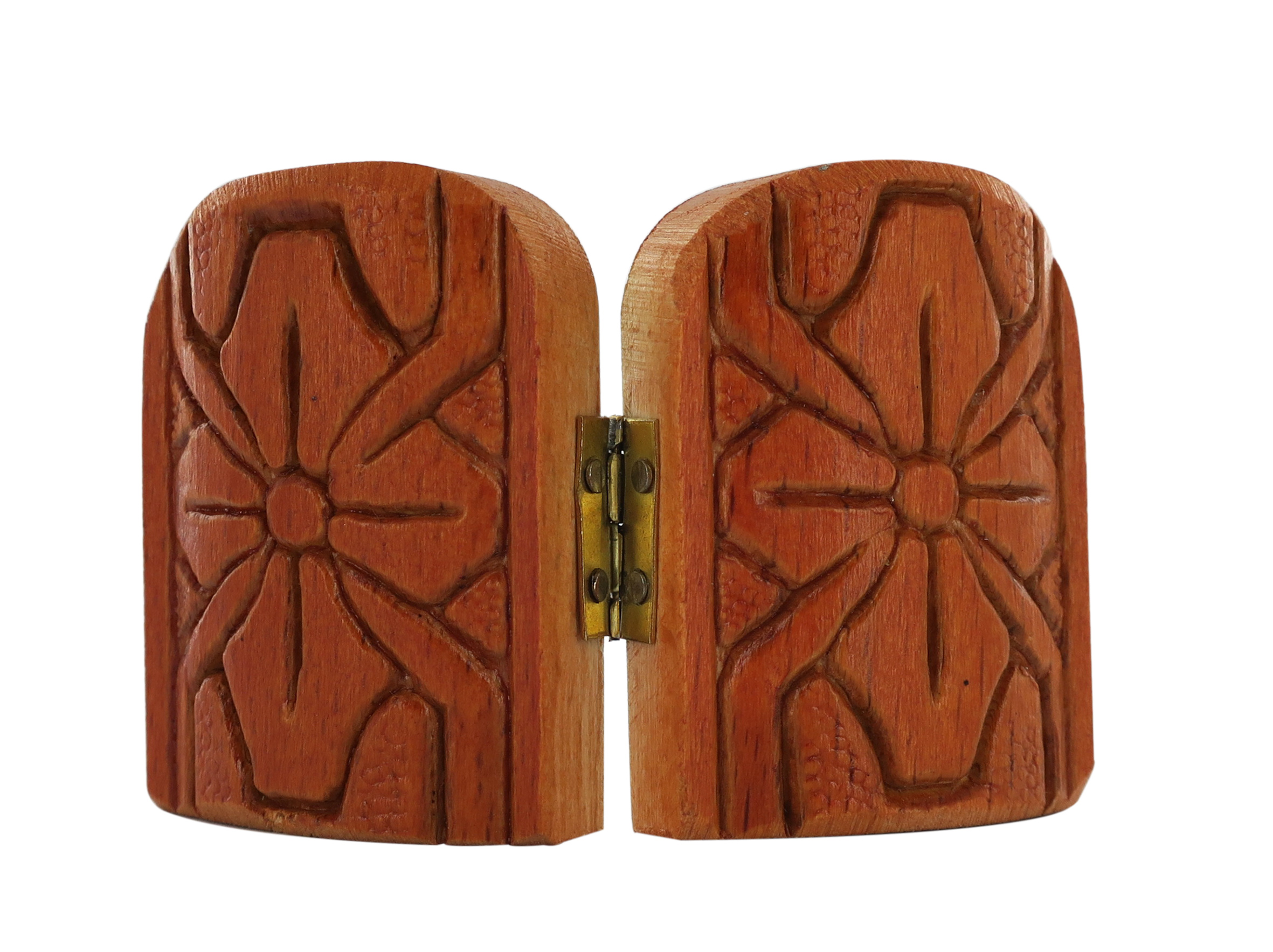 A seconda della disponibilità, il motivo floreale dell'intaglio esterno e le immagini all'interno del dittico potrebbero differire rispetto a quanto indicato in foto.