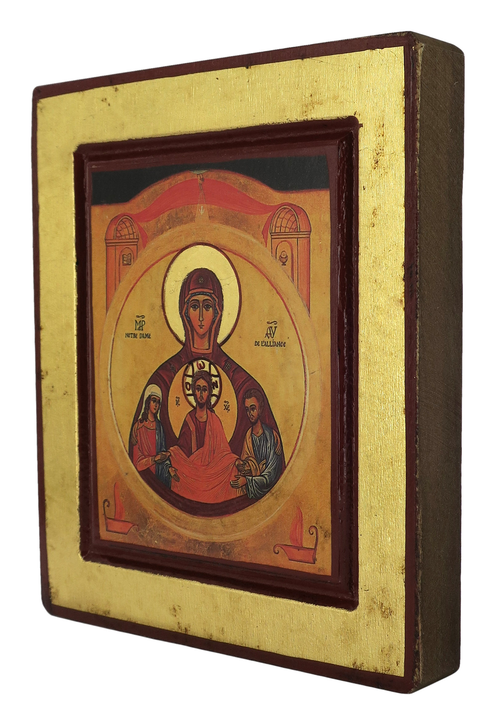 Icona degli sposi - Nostra Signora dell'Alleanza, Icona in Stile Arte Bizantina, Icona su Legno Rifinita con Aureole, Scritte e Bordure Fatte a Mano, Produzione Greca - 14 x 12 Cm