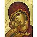 Icona da parete, di forma rettangolare, che raffigura la Vergine della Tenerezza di Vladimir (altrimenti detta "Theotókos di Vladimir"). Si tratta di una copia d'arte bizantina: l'icona originale della Madre di Dio della Tenerezza, a cui questa riproduzione si ispira, fu dipinta a Costantinopoli nel XII secolo ed è conservata a Mosca. Tra le icone ortodosse più venerate al mondo, la Theotókos ("Madre di Dio" in greco) è la figura protettrice della Russia.