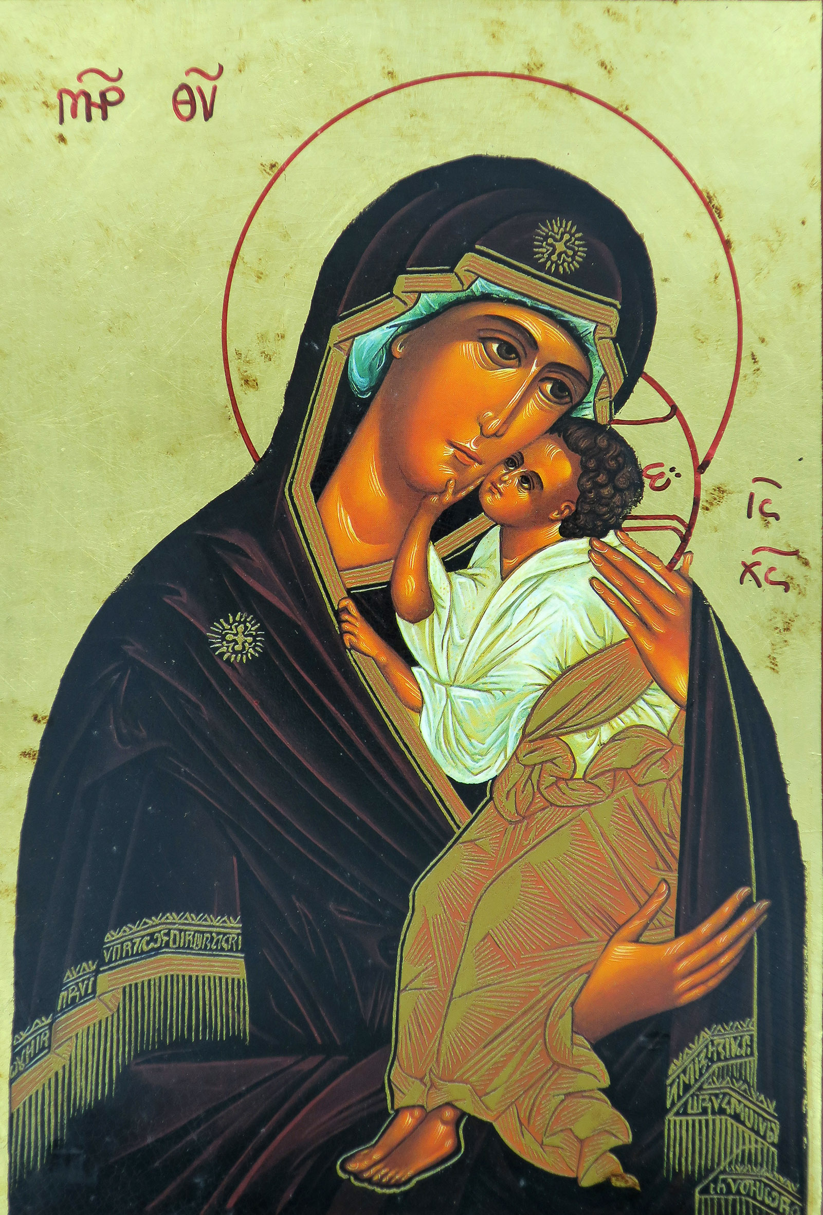 Icona da parete, di forma rettangolare, che raffigura la Madonna di Jaroslav. Si tratta di una copia dell'icona dipinta a mano dall'iconografa Lia Galdiolo di Padova. Nella scena, la Vergine ha in braccio il Bambino, raffigurato a figura intera, con colori delle vesti inversi rispetto a quelli della madre. Tale rappresentazione rientra nella tipologia di icone mariane "eleusa", in cui Maria è "Madre di Dio della Tenerezza".