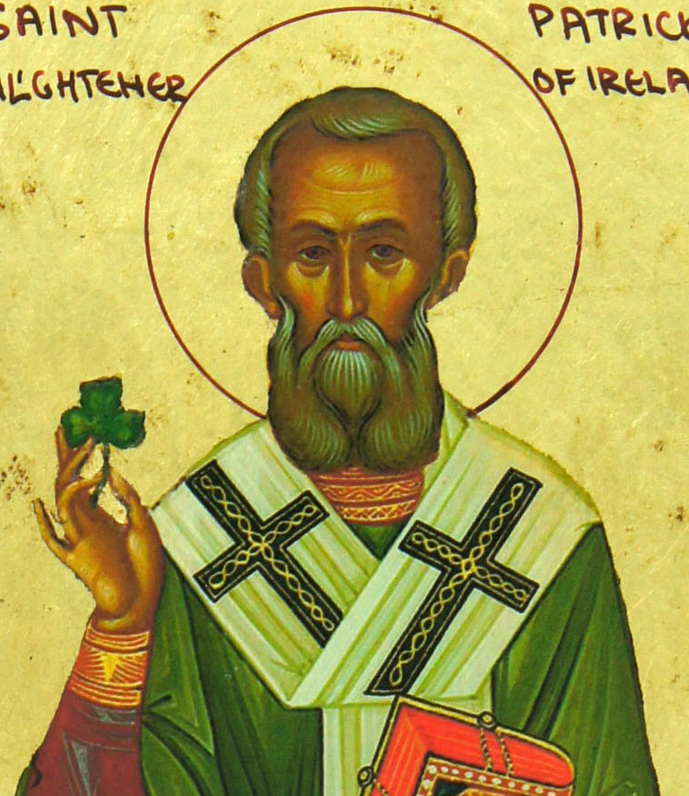 Icona da parete raffigurante San Patrizio (Saint Patrick), figura molto popolare della cristianità irlandese e santo patrono d'Irlanda, di Boston e di New York, celebrato in tutto il mondo il 17 marzo. S. Patrizio, considerato l'Evangelizzatore dell'Irlanda, è qui rappresentato in vesti di color verde, tiene in mano il simbolico trifoglio (elemento da lui adottato per spiegare il concetto di Trinità durante la sua opera di evangelizzazione) ed è definito con l'iscrizione "Enlightener of Ireland". Nella mano sinistra tiene, invece, il libro delle Sacre Scritture, simbolo della parola del Signore da lui professata.