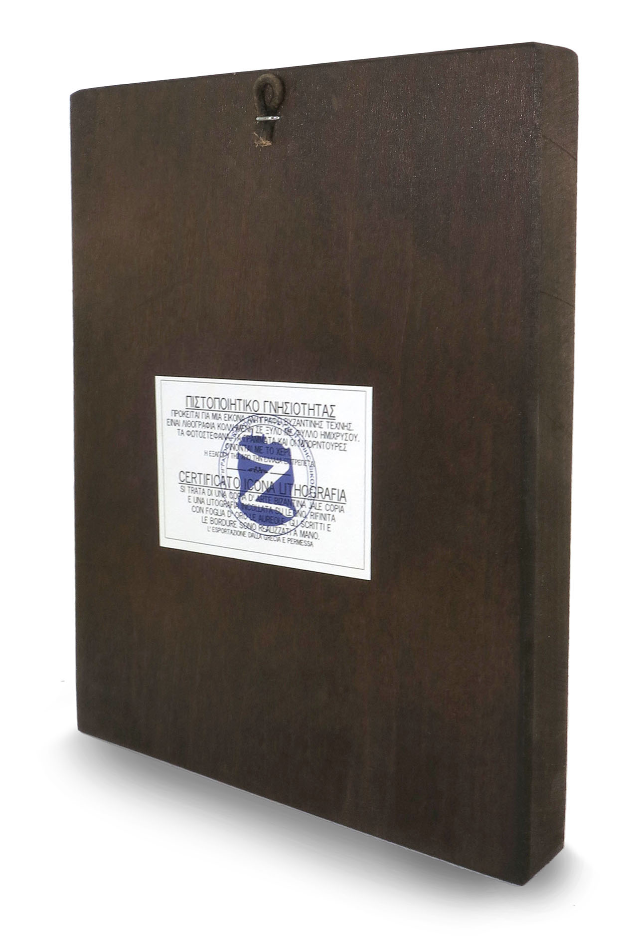 Il retro reca una certificazione che attesta le caratteristiche produttive di questa icona di St. Paddy, realizzata in Grecia.
