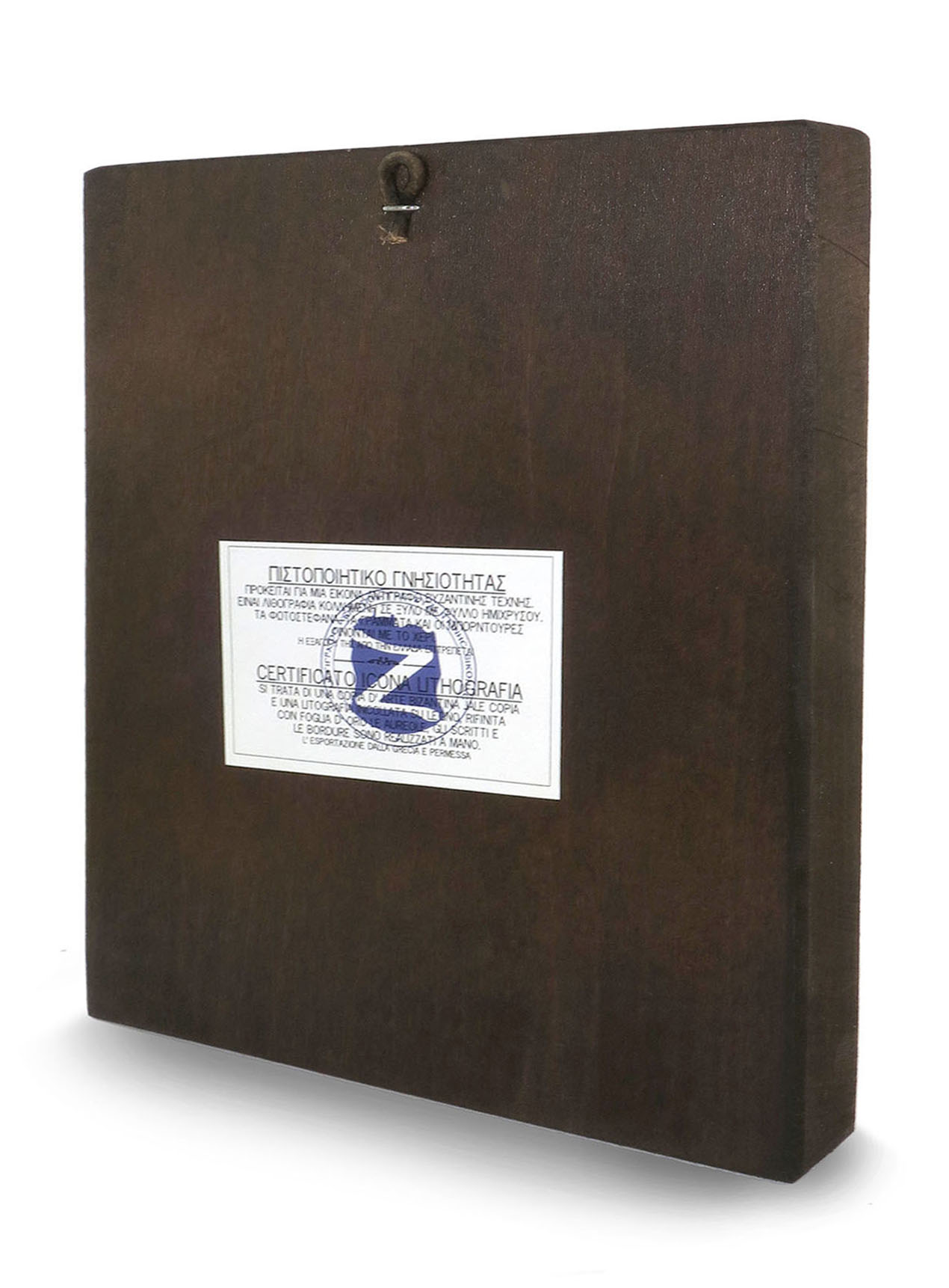 Il certificato sul retro attesta le caratteristiche di questa icona, realizzata in Grecia.