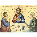 Icona Cena Emmaus dipinta a mano su legno con fondo oro cm 19x26