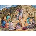 Icona raffigurante "il discorso della montagna" dipinta a mano su legno secondo le tecniche bizantine. Il discorso della montagna è un sermone rivolto da Gesù ai suoi discepoli, riportato nel vangelo secondo Matteo. Si pensa che Gesù abbia rivolto questo discorso su una montagna al nord del mare di Galilea, vicino a Cafarnao.