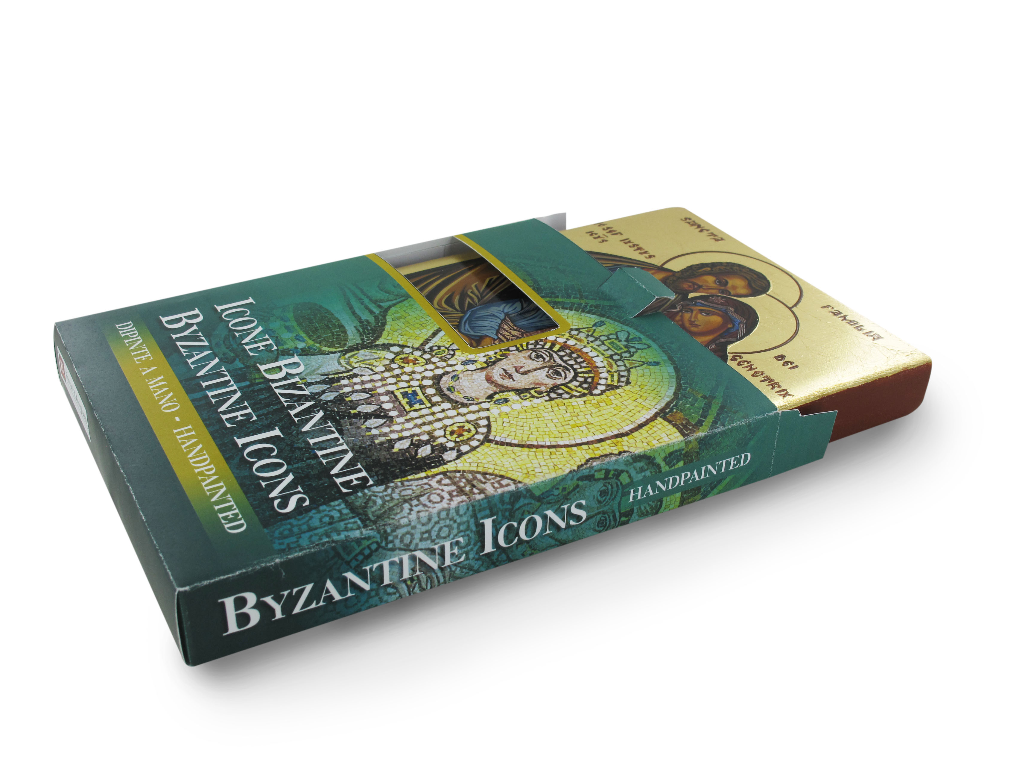 Icona raffigurante la Sacra Famiglia dipinta a mano seguendo delle tecniche bizantine tipiche e utilizzando i materiali migliori.