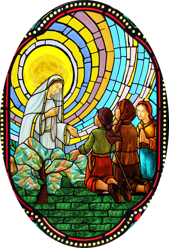 La tavola ad arco che rappresenta la Madonna di Fatima ha colori vivaci ed il tipo di lavorazione ricorda le vetrate in stile gotico. La decorazione che attornia l'apparizione, è dorata ed eseguita con oro lucido, così il bordo che attornia la tavola stessa. Si presenta in una busta trasparente dello stesso formato della tavola.