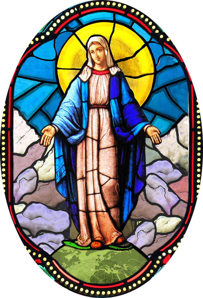 La tavola ad arco che rappresenta la Madonna Miracolosa ha colori vivaci ed il tipo di lavorazione ricorda le vetrate in stile gotico. La decorazione che attornia l'apparizione, è dorata ed eseguita con oro lucido, così il bordo che attornia la tavola stessa. Si presenta in una busta trasparente dello stesso formato della tavola.