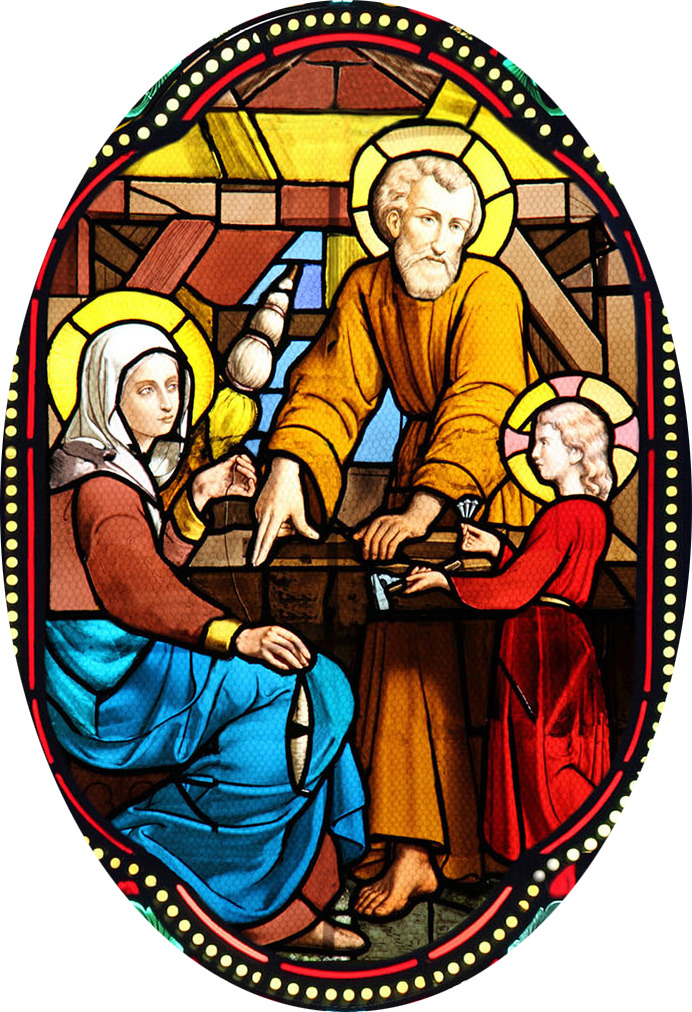 La tavola ad arco che rappresenta la Santa Famiglia ha colori vivaci ed il tipo di lavorazione ricorda le vetrate in stile gotico. La decorazione che attornia l'apparizione, è dorata ed eseguita con oro lucido, così il bordo che attornia la tavola stessa. Si presenta in una busta trasparente dello stesso formato della tavola.