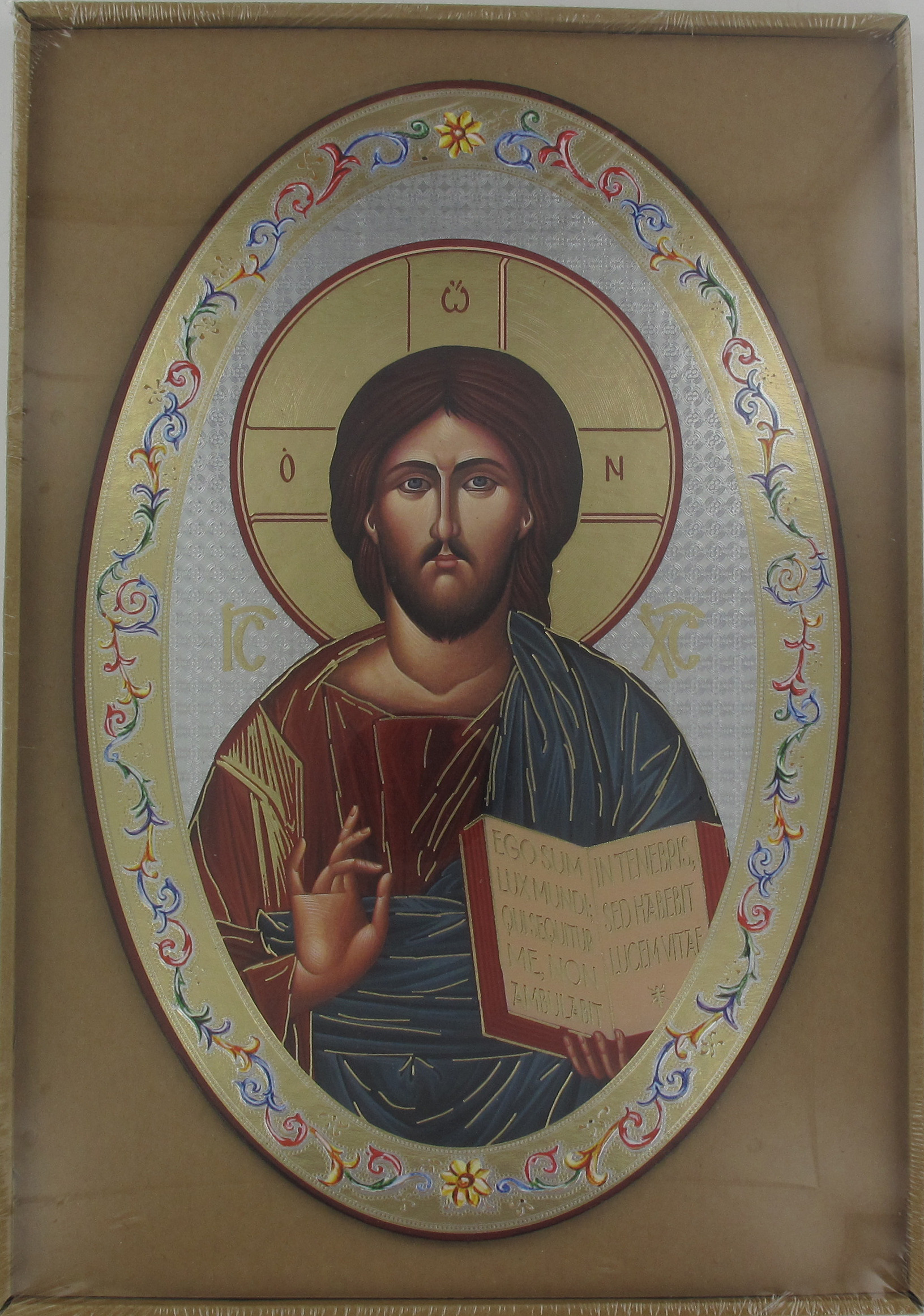 Icona Cristo con Libro Aperto stampa su legno ovale - 20 x 30 cm