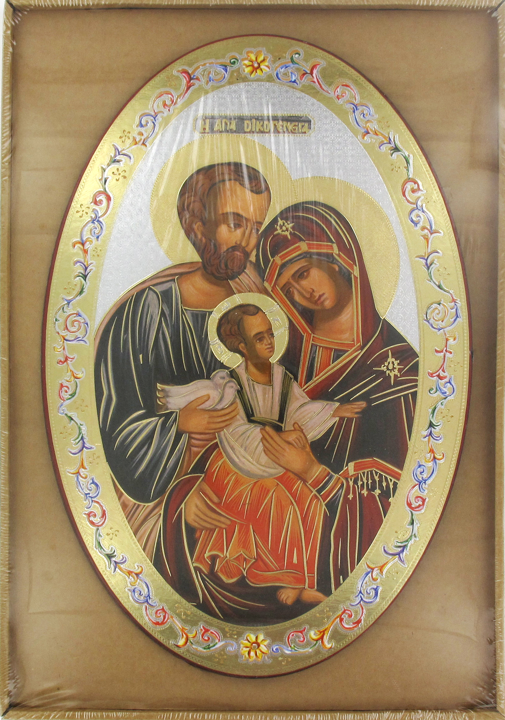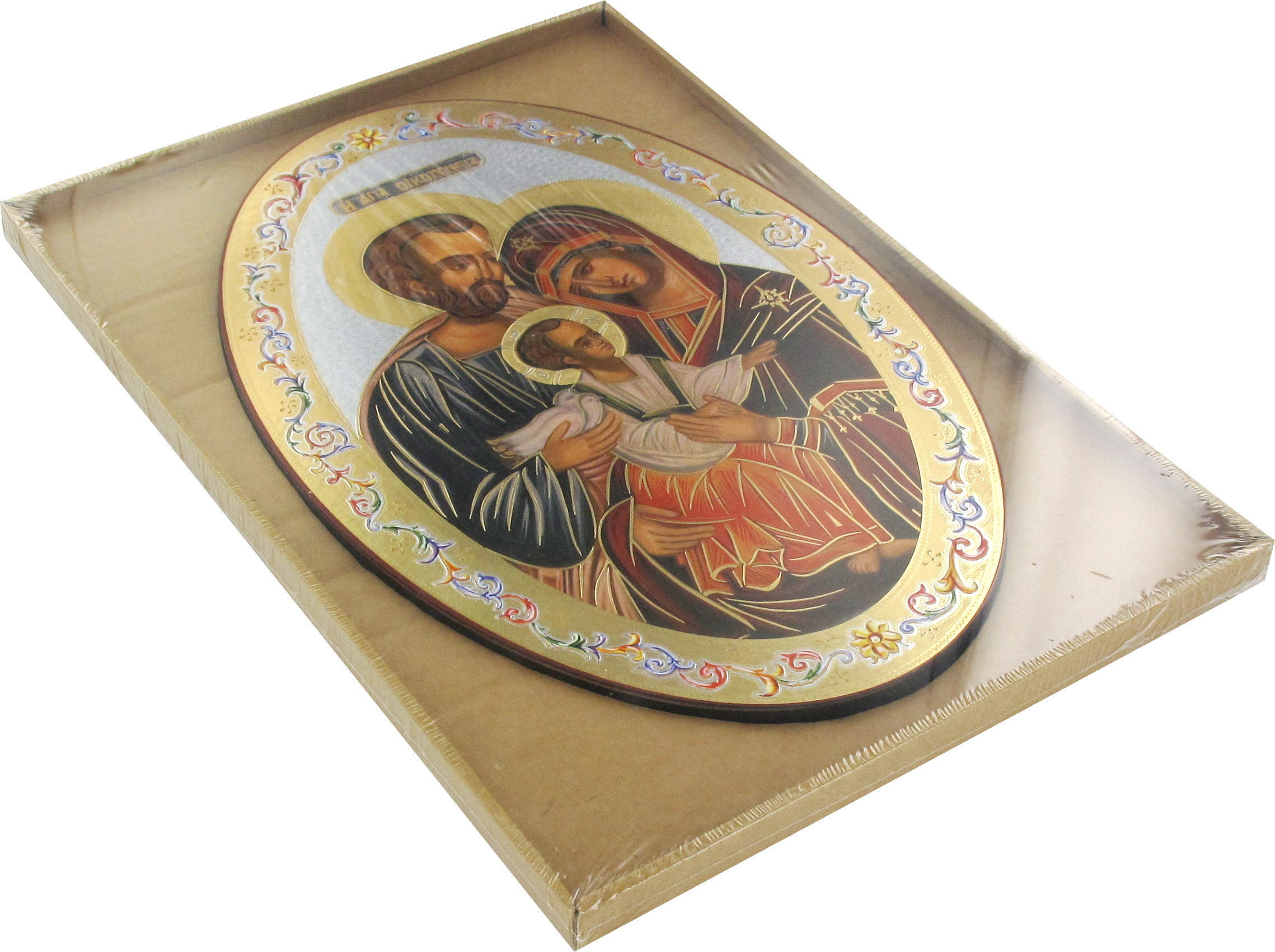 Icona Sacra Famiglia, stampa cartacea su legno MDF ovale - 20 x 30 cm