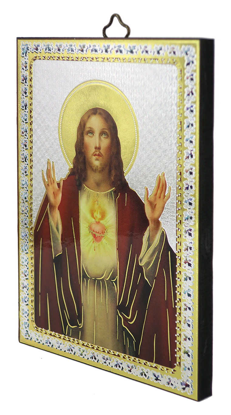 Quadretto in legno raffigurante il Sacro Cuore di Gesù, da appendere alla parete.