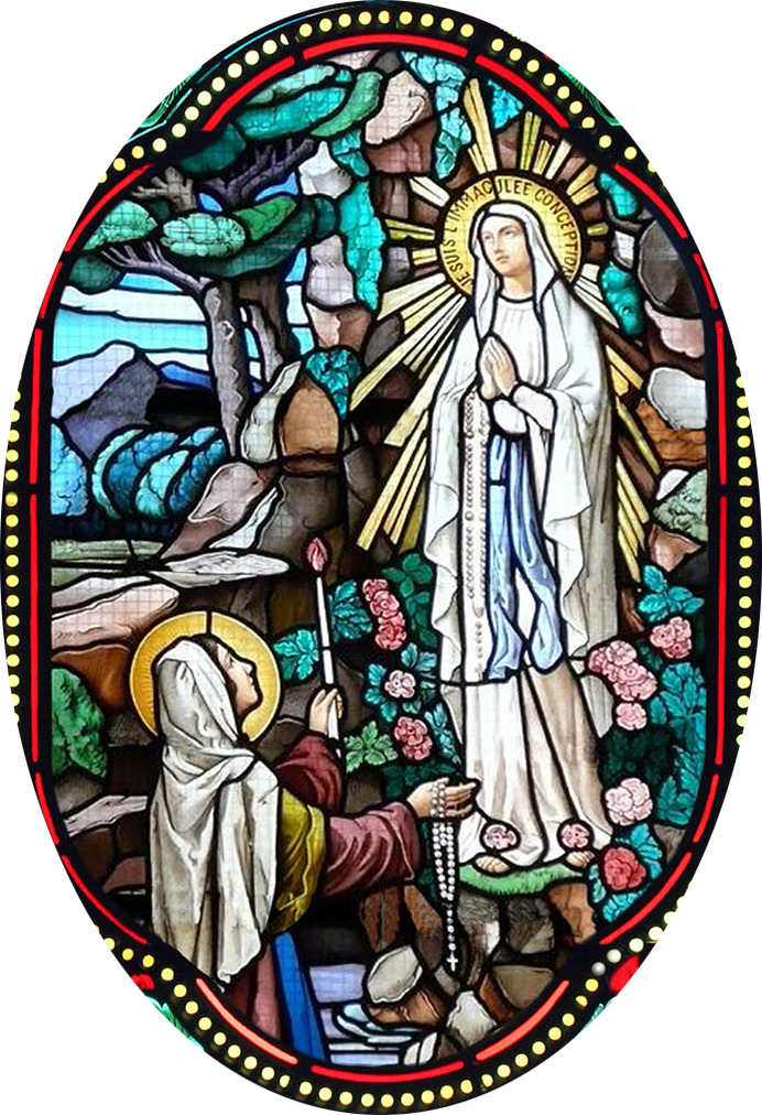 Quadro Apparizione di Lourdes stampa tipo vetrata su legno - 10 x 27 cm