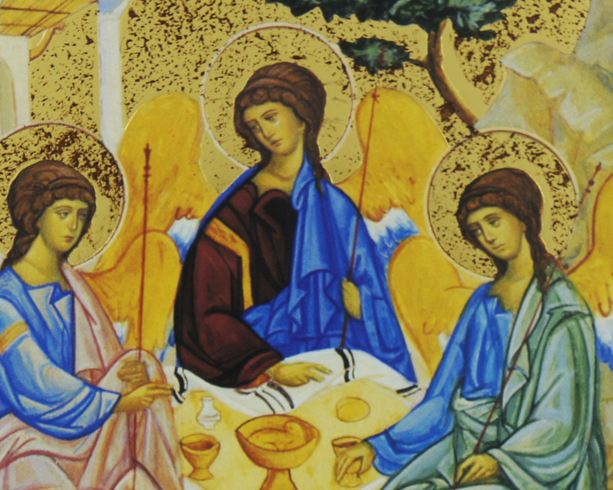 La tavola raffigura "la Trinità" o "Ospitalità di Abramo", opera del pittore considerato uno dei più grandi. Il soggetto raffigurato sulla sinistra rappresenta Dio Padre, al centro è collocato Gesù e sulla destra vi è presente lo Spirito Santo. Al centro del dipinto è raffigurato il calice, simbolo del sacrificio eucaristico di Cristo.